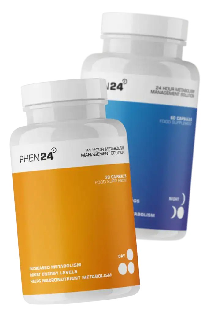 Phe24 es un innovador suplemento que combina fórmulas diurna y nocturna para **apoyar la pérdida de peso** las 24 horas del día. Su enfoque dual está diseñado para **aumentar tu metabolismo durante el día** y **promover un sueño reparador por la noche**, ayudándote a alcanzar tus objetivos de peso sin comprometer tu bienestar.